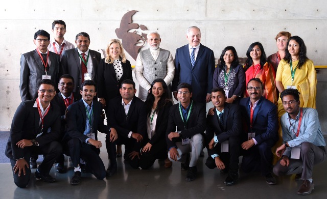 The Prime Minister, Narendra Modi and the Prime Minister of Israel, Benjamin Netanyahu with the innovators and Startup CEOs at iCreate Center, at Deo Dholera Village, in Ahmedabad, Gujarat on January 17, 2018.