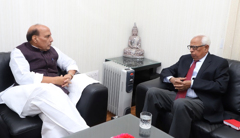 The Governor of Jammu & Kashmir, N.N. Vohra calling on the Union Home Minister, Rajnath Singh, in New Delhi on February 11, 2018.