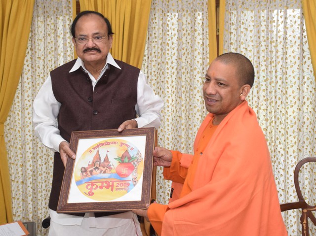 The Chief Minister of Uttar Pradesh, Yogi Adityanath calling on the Vice President, M. Venkaiah Naidu, in New Delhi on January 06, 2018.