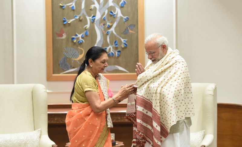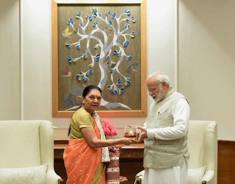The Governor of Madhya Pradesh, Anandiben Patel calling on the Prime Minister, Narendra Modi, in New Delhi on February 05, 2018.