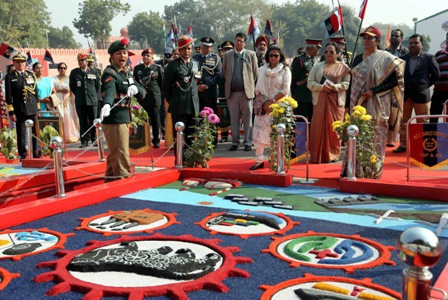The Union Minister for Defence, Nirmala Sitharaman visiting the Flag Area, during her visit to the Republic Day NCC Camp 2018, in New Delhi on January 22, 2018. The DG, NCC, Lt. Gen. B.S. Sahrawat is also seen.