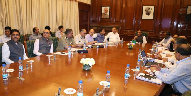 The Union Home Minister, Rajnath Singh chairing a High Level Meeting to review the Left Wing Extremism (LWE) situation in Chhattisgarh, in New Delhi on November 03, 2017. The Chief Minister of Chhattisgarh, Dr Raman Singh, the Minister of State for Home Affairs, Hansraj Gangaram Ahir and senior officers of the Union Home Ministry and the Chhattisgarh administration are also seen.