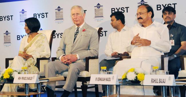 The Vice President, M. Venkaiah Naidu at the International Mentoring Summit on ‘Mentoring Young Grampreneurs for Inclusive Growth’, organised by the Bharatiya Yuva Shakti Trust, in New Delhi on November 09, 2017. The Prince of Wales is also seen.