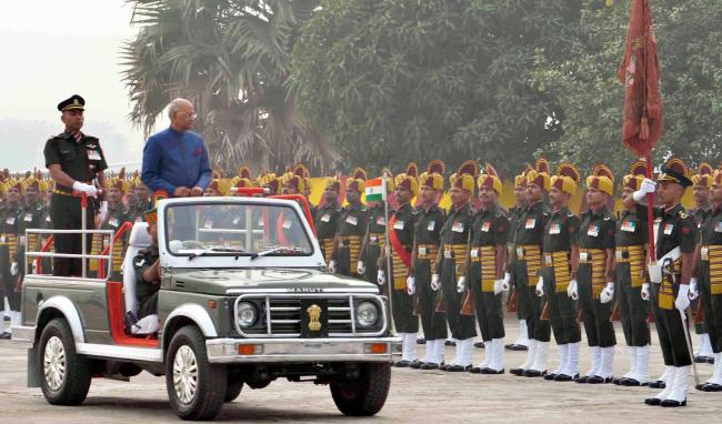 The President, Ram Nath Kovind inspecting the Guard of Honour on his Ceremonial Arrival as first visit to Bihar as President, at Patna Airport, in Bihar on November 09, 2017.
