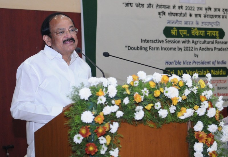The Vice President of India, M. Venkaiah Naidu addressing the gathering after interacting with the Agricultural Researchers on ‘Doubling Farm Income by 2022 in Andhra Pradesh and Telangana’, at ICAR - Indian Institute of Rice Research, in Hyderabad on March 31, 2018.