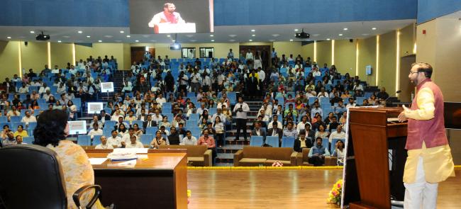 The Minister of State for Human Resource Development and Water Resources, River Development and Ganga Rejuvenation, Dr. Satya Pal Singh addressing at the Chintan Shivir/National Workshop on School Education, in New Delhi on November 06, 2017. The Union Minister for Human Resource Development, Prakash Javadekar, the Secretary, Department of School Education & Literacy, Anil Swarup and other dignitaries are also seen.