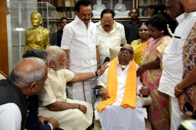 The Prime Minister, Narendra Modi meeting the DMK patriarch M. Karunanidhi, in Chennai on November 06, 2017.