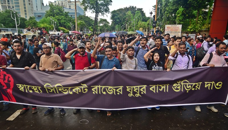 Thousands of junior doctors are protesting close to the Swastha Bhavan (the administrative building of the state's Health and Family Welfare) in Salt Lake area on Tuesday (Sept 10, 2024) to demand justice for the rape and murder of a medic in RG Kar Medical College and Hospital. The deadline set by the Supreme Court for doctors to join their duty ended at 5 pm.(Images by Avishek Mitra/IBNS)