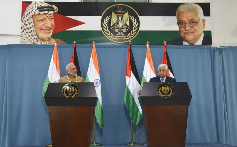 The Prime Minister, Narendra Modi and the President of the State of Palestine, Mahmoud Abbas, at the joint Press meet, at Ramallah, Palestine on February 10, 2018.
