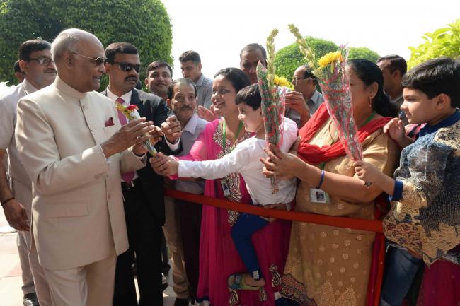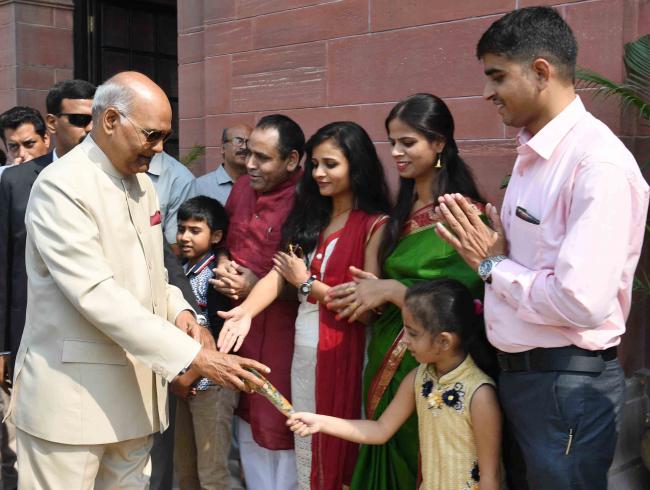 The President, Ram Nath Kovind receiving greeting from all walks of life, on the occasion of Deepawali, at Rashtrapati Bhavan, in New Delhi on October 19, 2017.