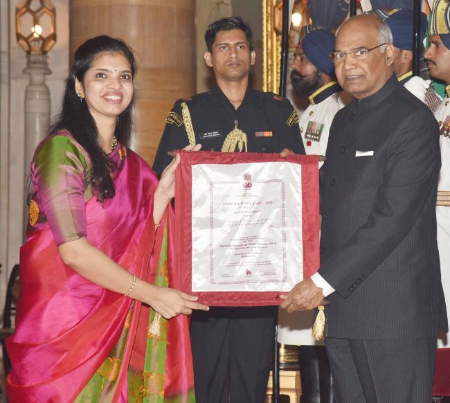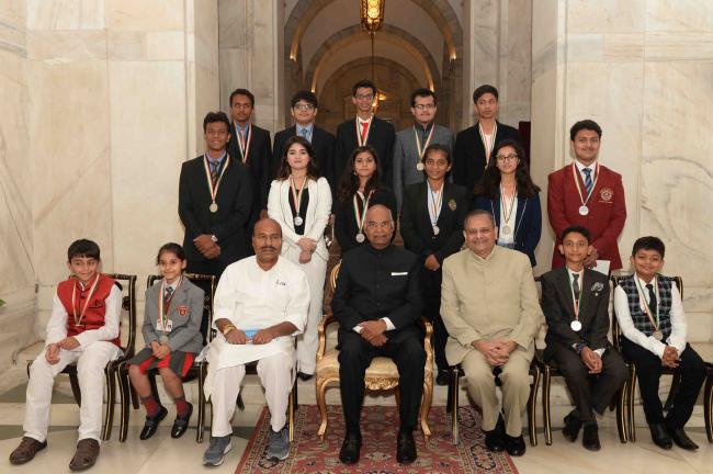 The President, Ram Nath Kovind presenting the National Child Awards to the Children for exceptional achievements, on the occasion of Children’s Day, at Rashtrapati Bhavan, in New Delhi on November 14, 2017.
