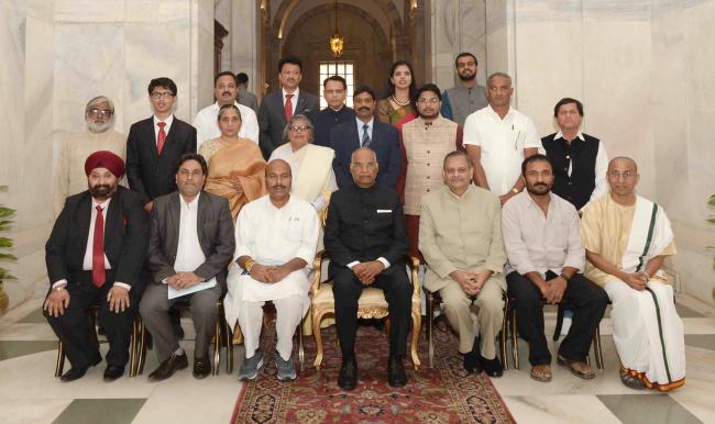 The President, Ram Nath Kovind in a group photograph with the recipients of the National Child Awards for exceptional achievements, on the occasion of Children’s Day, at Rashtrapati Bhavan, in New Delhi on November 14, 2017. The Minister of State for Women & Child Development and Minority Affairs, Dr. Virendra Kumar and the Secretary, Ministry of Women and Child Development, Rakesh Srivastava are also seen.