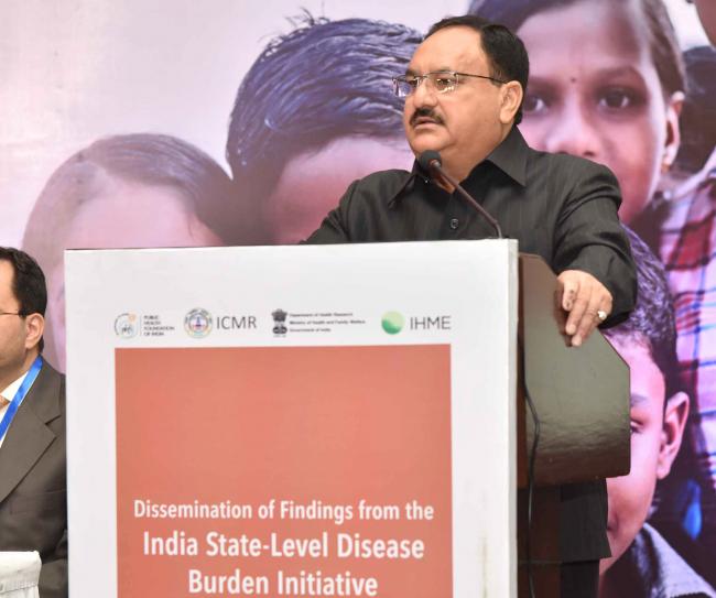 The Union Minister for Health & Family Welfare, J.P. Nadda addressing at the launch of the ‘India State-level Disease Burden Report and Technical Paper’, an initiative by the Indian Council of Medical Research in collaboration with Public Health Foundation of India and Institute for Health Metrics and Evaluation (University of Washington, Seattle), in New Delhi on November 14, 2017.