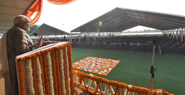 The Prime Minister, Narendra Modi addressing the public meeting, at Amity University Ground, in Noida, Uttar Pradesh on December 25, 2017.