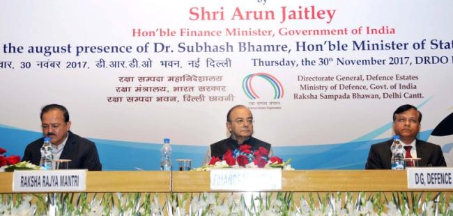 The Union Minister for Finance and Corporate Affairs, Arun Jaitley and the Minister of State for Defence, Dr. Subhash Ramrao Bhamre on the occasion of Annual Raising Day of the Defence Estate Organisation, in New Delhi on November 30, 2017.