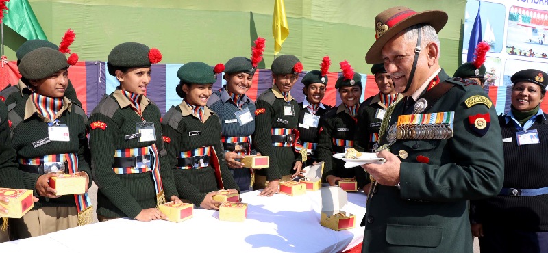 The Chief of Army Staff, General Bipin Rawat interacting with cadets, during his visit to the NCC Republic Day Parade Camp 2018, in New Delhi on January 16, 2018.