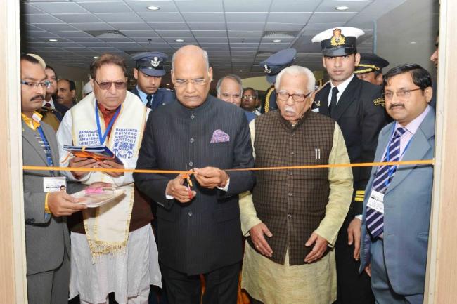 The President, Ram Nath Kovind inaugurating the Rural Grass Root Innovators Exhibition, at the 7th Convocation of Babasaheb Ambedkar University, at Lucknow, in Uttar Pradesh on December 15, 2017. The Governor of Uttar Pradesh, Ram Naik is also seen.