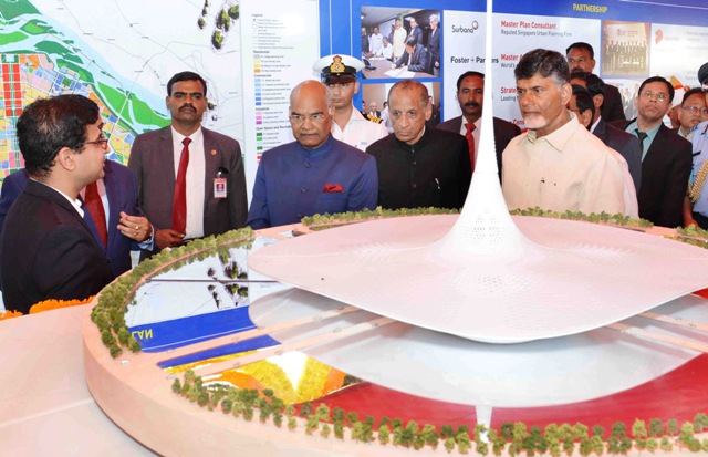 The President, Ram Nath Kovind at the dedication of Andhra Pradesh Fibregrid, Andhra Pradesh Survelliance Project, Drone Project and FSOC, at Velagapudi, in Andhra Pradesh on December 27, 2017. The Governor of Andhra Pradesh and Telangana, E.S.L. Narasimhan and the Chief Minister of Andhra Pradesh, N. Chandrababu Naidu are also seen.