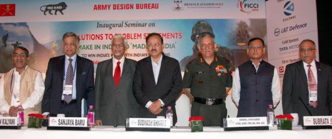 The Minister of State for Defence, Dr. Subhash Ramrao Bhamre at the inaugural of a seminar on Solutions to Problem Statements with the theme ‘Indigenous Technological Empowerment of the Indian Army’ in New Delhi on October 25, 2017. The Chief of Army Staff, General Bipin Rawat and other dignitaries are also seen.