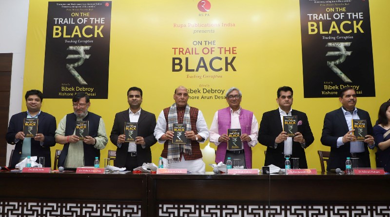 The Union Home Minister, Rajnath Singh releasing the book edited by Bibek Debroy titled ‘On the Trail of the Black’, in New Delhi on January 27, 2018.
