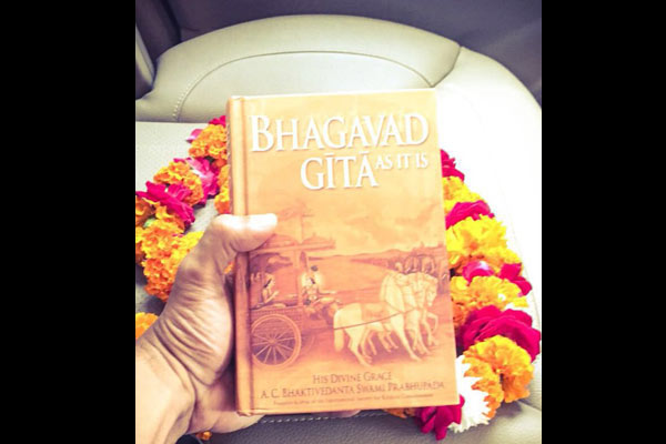 "Couldn't have asked for a better start to the day.Landed in Mathura & got gifted this precious Bhagvad Gita on day 1 by a passerby! #blessed," the actor tweeted.