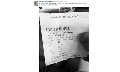 Darren Aronofsky also tagged Paramount Pictures in his tweet saying, “In Cochin India checked out #noahmovie at the Lulu Mall@ParamountPicsINpic.twitter.comZe4X8MNQCV .”