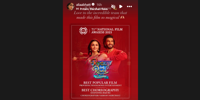 Alia, who herself is a National Award winning actress, posted on Instagram, "What a moment. Love to the incredible team that made this film so magical."