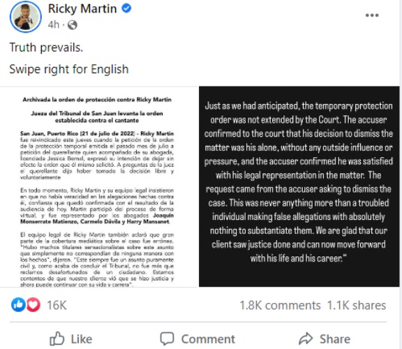 According to police spokesperson Axel Valencia, the order will be “archived” since there “is nothing criminal” pending against Martin.