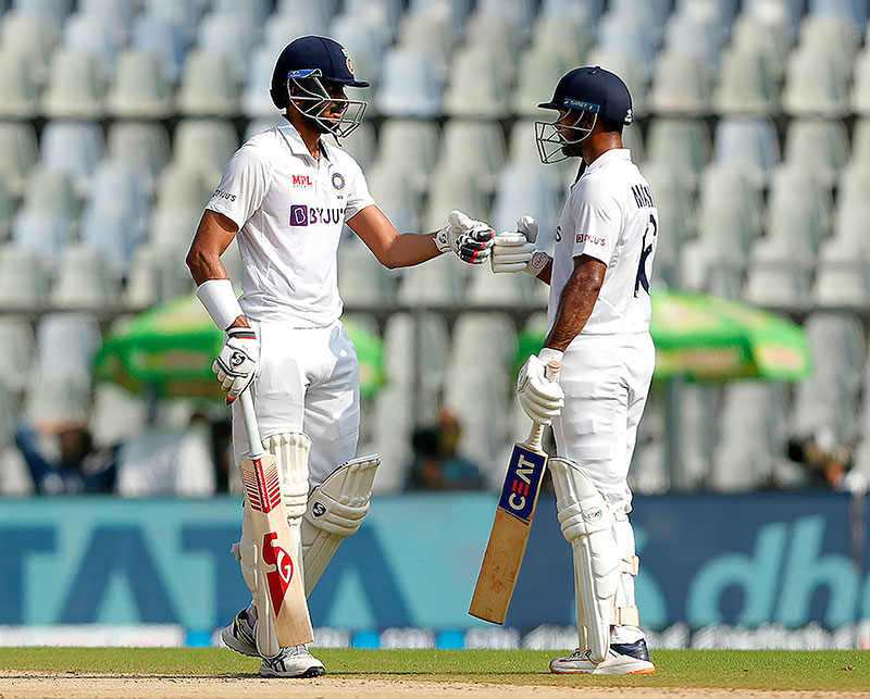 Axar Patel, who batted down the order, slammed 52 off 128 balls, giving support to Agarwal on the second day of the Test.