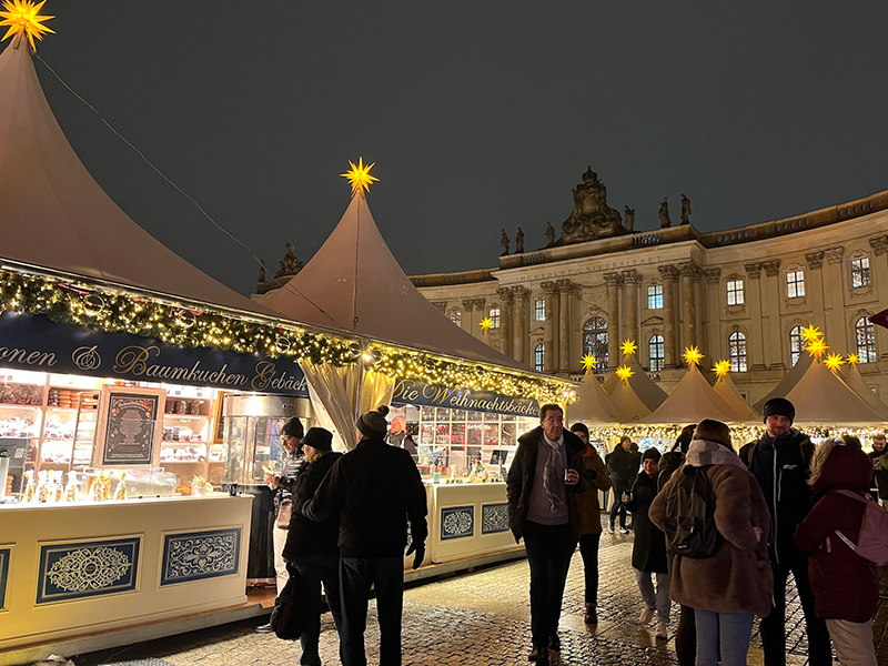 This Christmas market here is usually located on a beautiful square, but due to construction work, it shifted to nearby Bebelplatz last year.