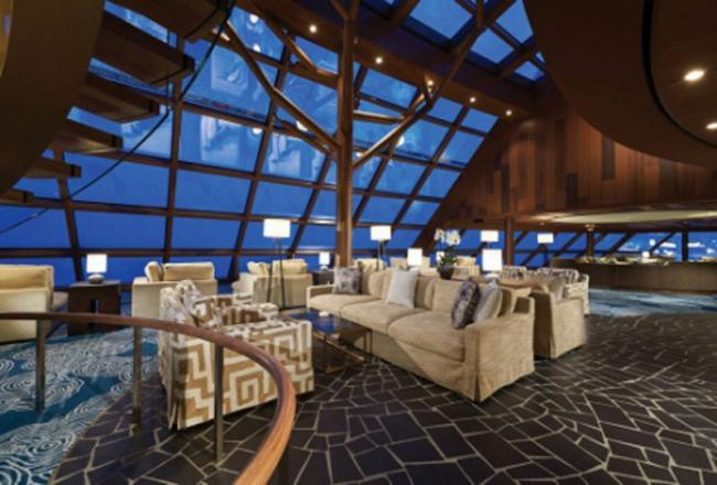 Guests will be in sheer awe at the 180-degree indoor Observation Lounge that offers expansive views at sea and features a full-service bar so guests can toast colorful sunsets with their favourite cocktail. More than 3,500 square feet of custom built floor-to-ceiling windows provide spectacular vistas while cruising past snow-capped mountains.