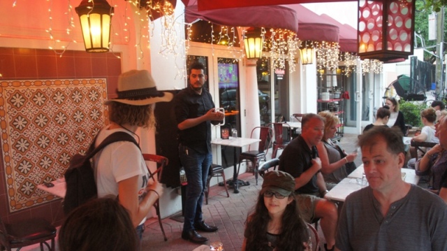 We chose Tapas y Tintos for some Spanish cuisine sitting in one of the tables that spill out onto the streets filled with tapas, paella and boardsofjamon Iberico and manchego cheese. The menu included albondigas (meatballs), piquillo peppers stuffed with cod, garlic shrimp, Spanish tortilla made with potatoes and onions and Gallega octopus.