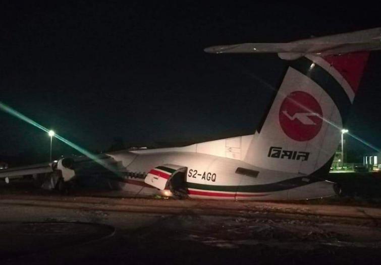 Images circulating on social media show a severely damaged Bombardier Dash 8 aircraft of Biman Bangladesh sitting on its belly.