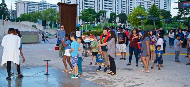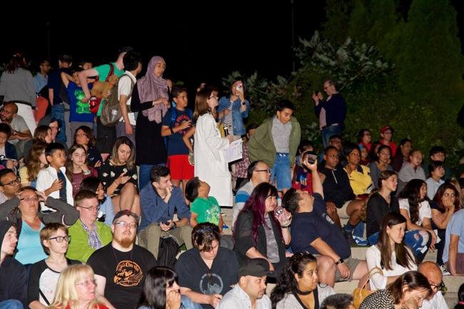 The event started at 8 pm on 27th July with large crowds of young and old gathered to observe through telescopes mounted on different spots outside the Ontario Science Centre main reception area to enable viewing different planets by children and adults.
