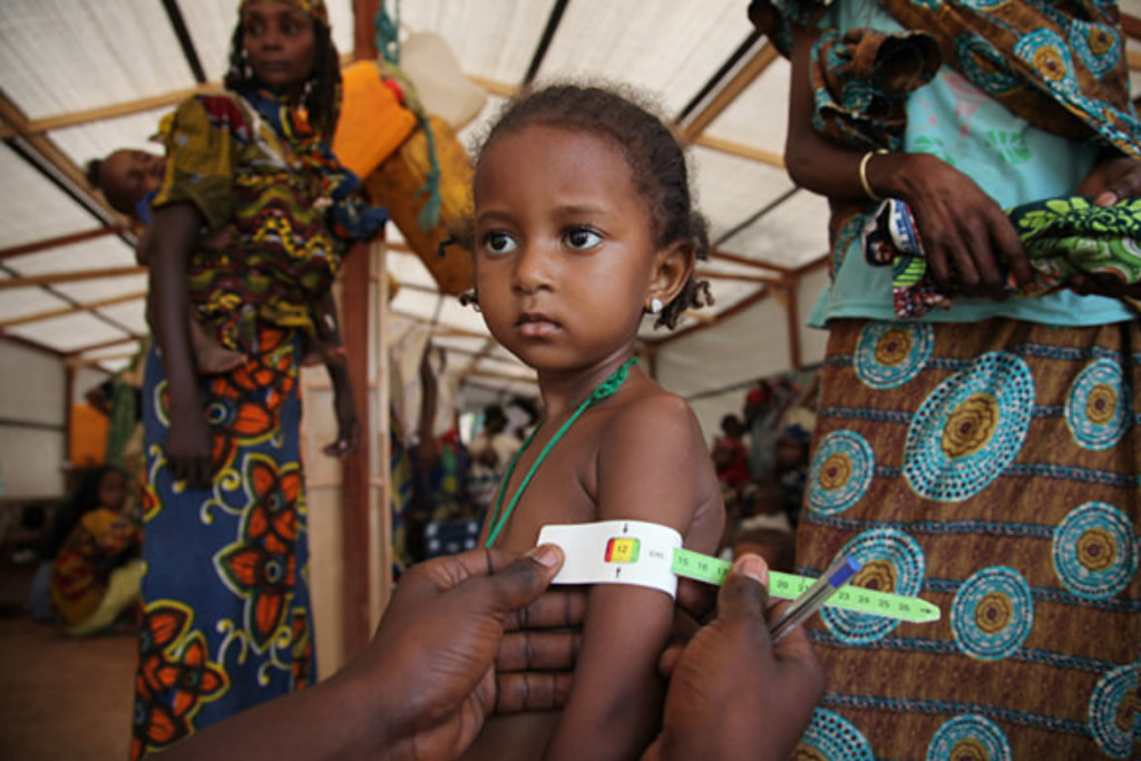 (A girl receives a nutrition screening in Bangui, where conflict has limited access to health and other services, and rates of malnutrition are on the rise. Photo: UNICEF/Roger LeMoyne)