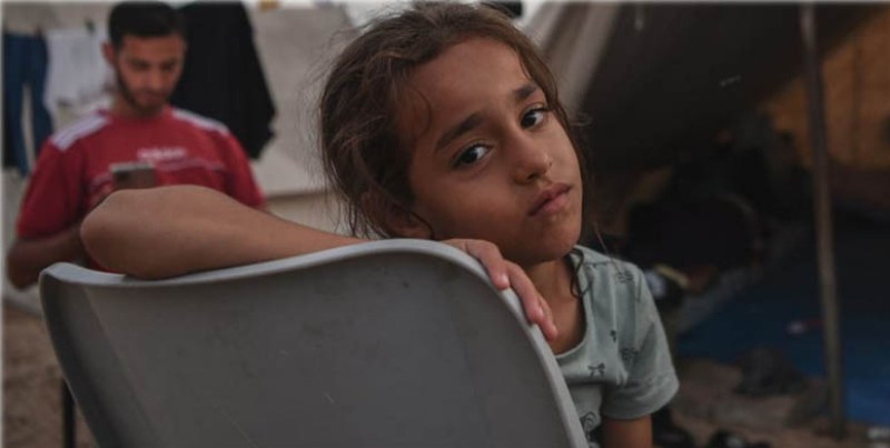 A girl rests in a camp for displaced persons in Gaza: Photo Courtesy: UNICEF/Abed Zaqout