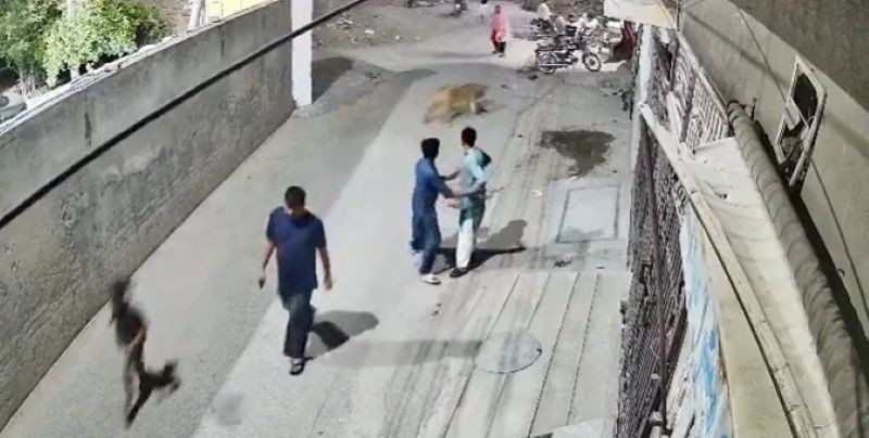 Lion attacking a woman and three children in Lahore. Photo: X page videograb