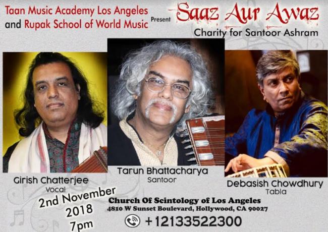 Kolkata/Los Angeles, Oct 25 (IBNS): India's well-known santoor player Pandit Tarun Bhattacharjee is scheduled to perform at the Church of Scintology, Los Angeles, on November 2, 2018.