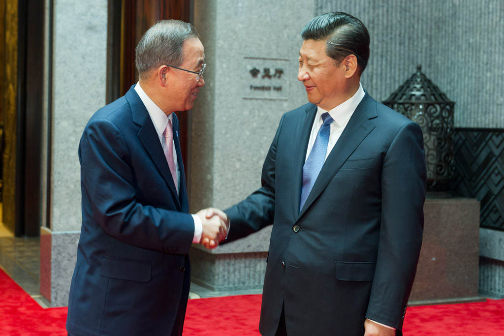 [Secretary-General Ban Ki-moon (left) meets with President Xi Jinping of China, during his official visit. UN Photo/Mark Garten]