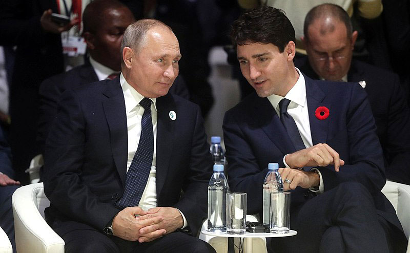 File image of Russian President Vladimir Putin and Canadian Prime Minister Justin Trudeau by Kremlin.ru via Wikimedia Commons