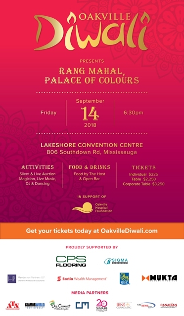 2018 Oakville Diwali Gala to raise funds for Oakville Trafalgar Memorial Hospital