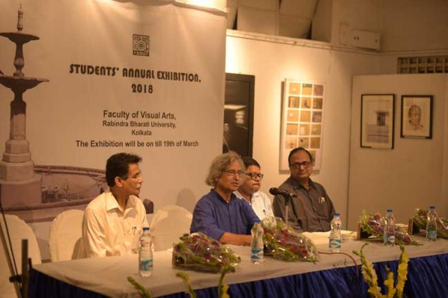 Professor Jogen Chowdhury (renowned artist, pedagogue and Rajya Sabha member), Professor Sabyasachi Basu Roy Chaudhury (Vice-Chancellor, Rabindra Bharati University), Debdatta Roy (Acting Registrar, Rabindra Bharati University), Professor Aditya Prasad Mitra (Dean, Faculty of Visual Arts, Rabindra Bharati University) were present at the inauguration.