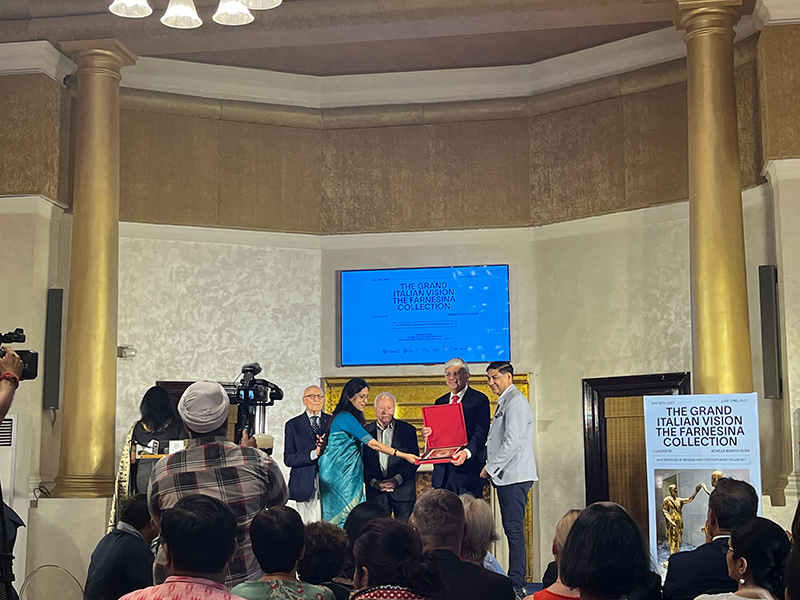 The Italian embassy in a release said “The Grand Italian Vision. The Farnesina Collection” is the enthralling journey through the history of Italian art from the twentieth century to today, through more than seventy works selected by Achille Bonito Oliva from the Farnesina Collection, an extraordinary art collection of the Ministry of Foreign Affairs and International Cooperation of Italy.