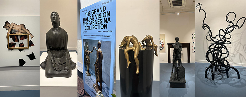 The title, “The Grand Italian Vision. The Farnesina Collection”, highlights the identity of Italian art in the twentieth and twenty-first centuries, structured along both figurative and abstract lines, with both eventually flowing into a synthesis that exalts stylistic eclecticism and linguistic contamination, and is sustained by a conceptual basis, the sense of history and indication of a world view.