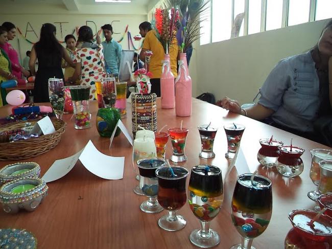 Students from all streams displayed their creativity through beautifully and artistically designed diyas, gift envelopes, photo frames and candles.