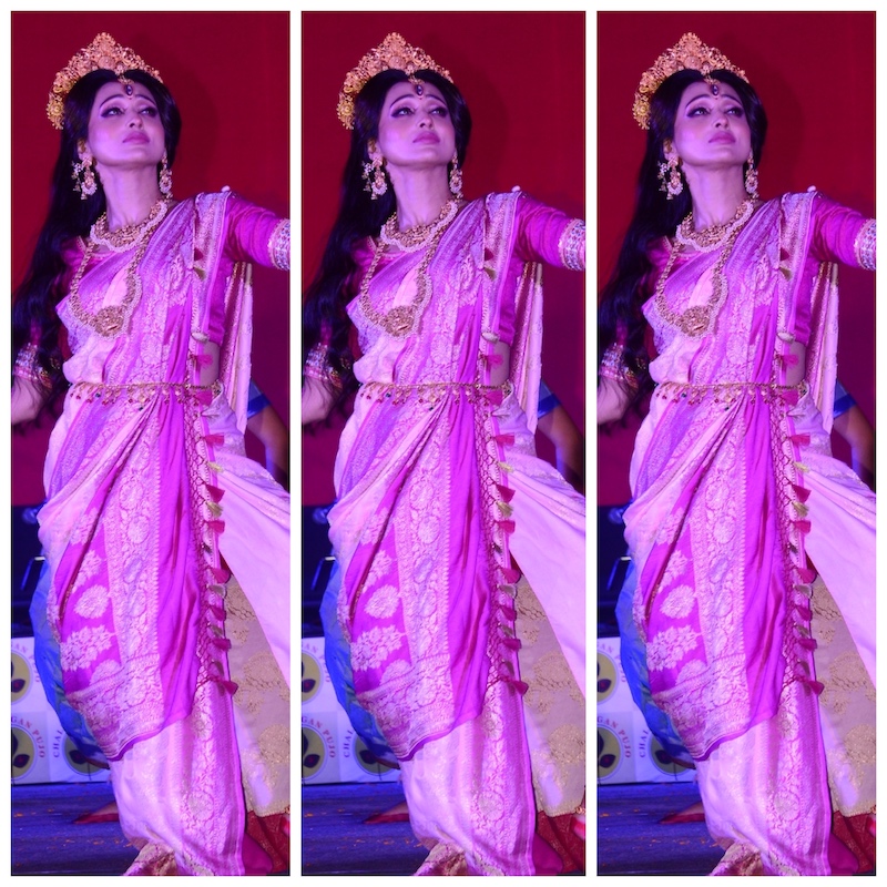 Mimi Chakraborty, Actress and Member of Parliament, rendering a dance performance at the Manicktala Chaltabagan Lohapatty Durga Puja function at the ITC Royal Bengal, Kolkata,