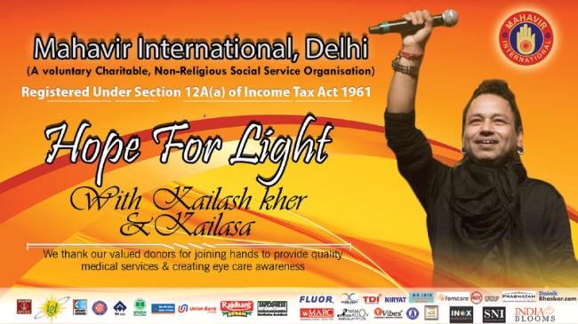 New Delhi, Mar 16 (IBNS): Eminent singer Kailash Kher is all set to support ‘Hope for Light’, a flagship event of Mahavir International at the occasion of Eye Care Day.