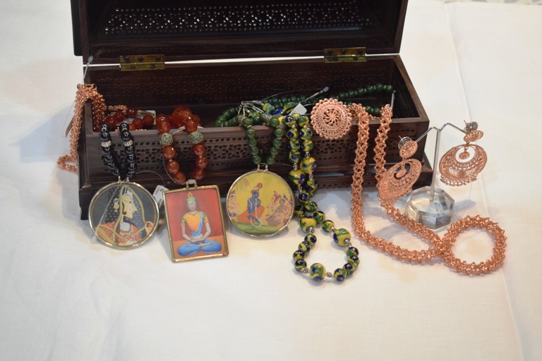 For those seeking tasteful accessories, there is a wide variety of jewelry items in carved wood, grass and enamel.