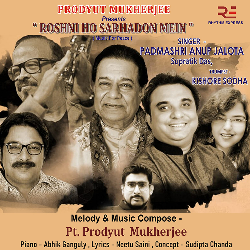 Kolkata/IBNS: The arts have always been supportive of positive feelings in society and accordingly, GiMA winning musician Pandit Prodyut Mukherjee, Padmasree Anup Jalota, and well-known trumpet player Kishore Sodha teamed up to say ‘no’ to war through a song titled ‘Roshni Ho Sarhadon Mein’.
