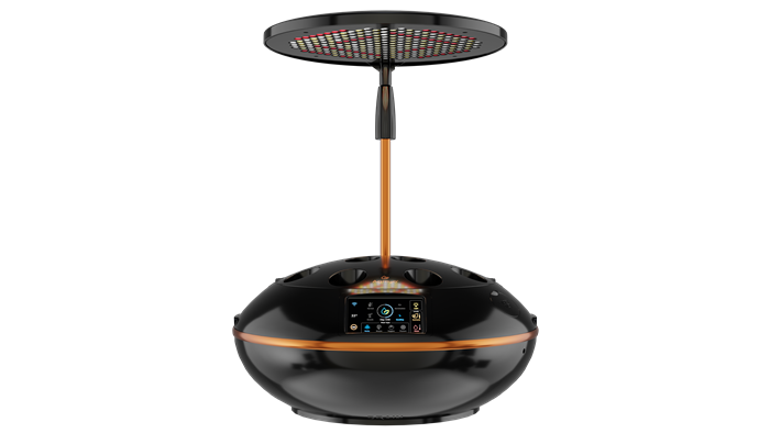 It can grow 12 plants at the same time aided by intelligent nutrient dosing, automating watering, and spectrum-adapted LEDs.
